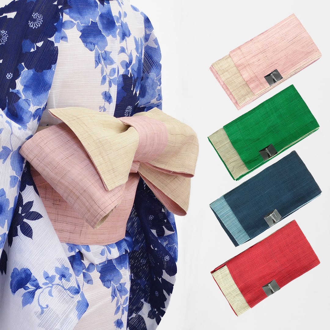 IKS 帯 半幅 小袋帯 麻きびら 幅17cm×長さ4m 麻100 日本製 レッド ネイビー ピンク グリーン