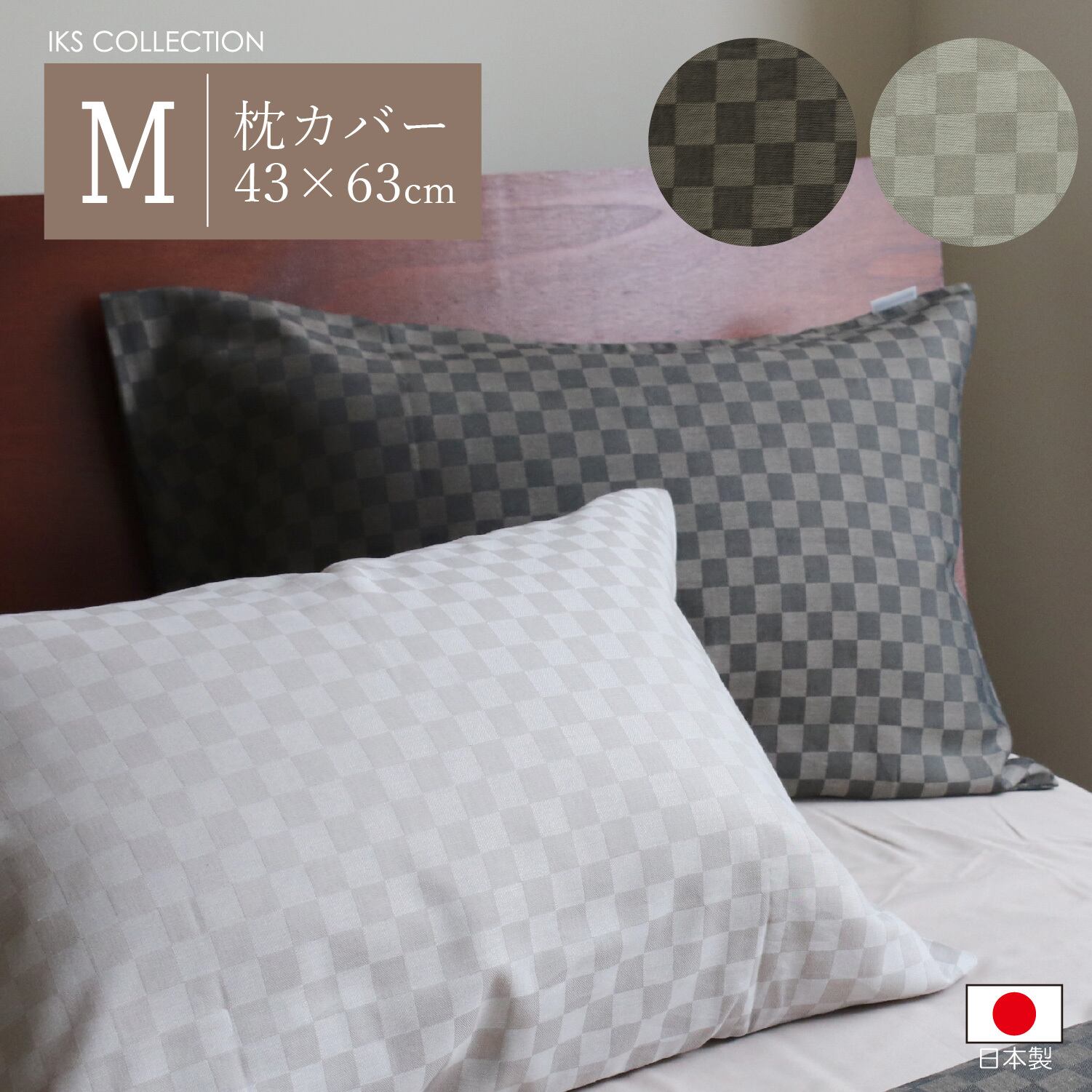枡 枕カバー ピロ―ケース M 43×63cm 日本製 抗菌防臭加工 モダン チェック柄 市松