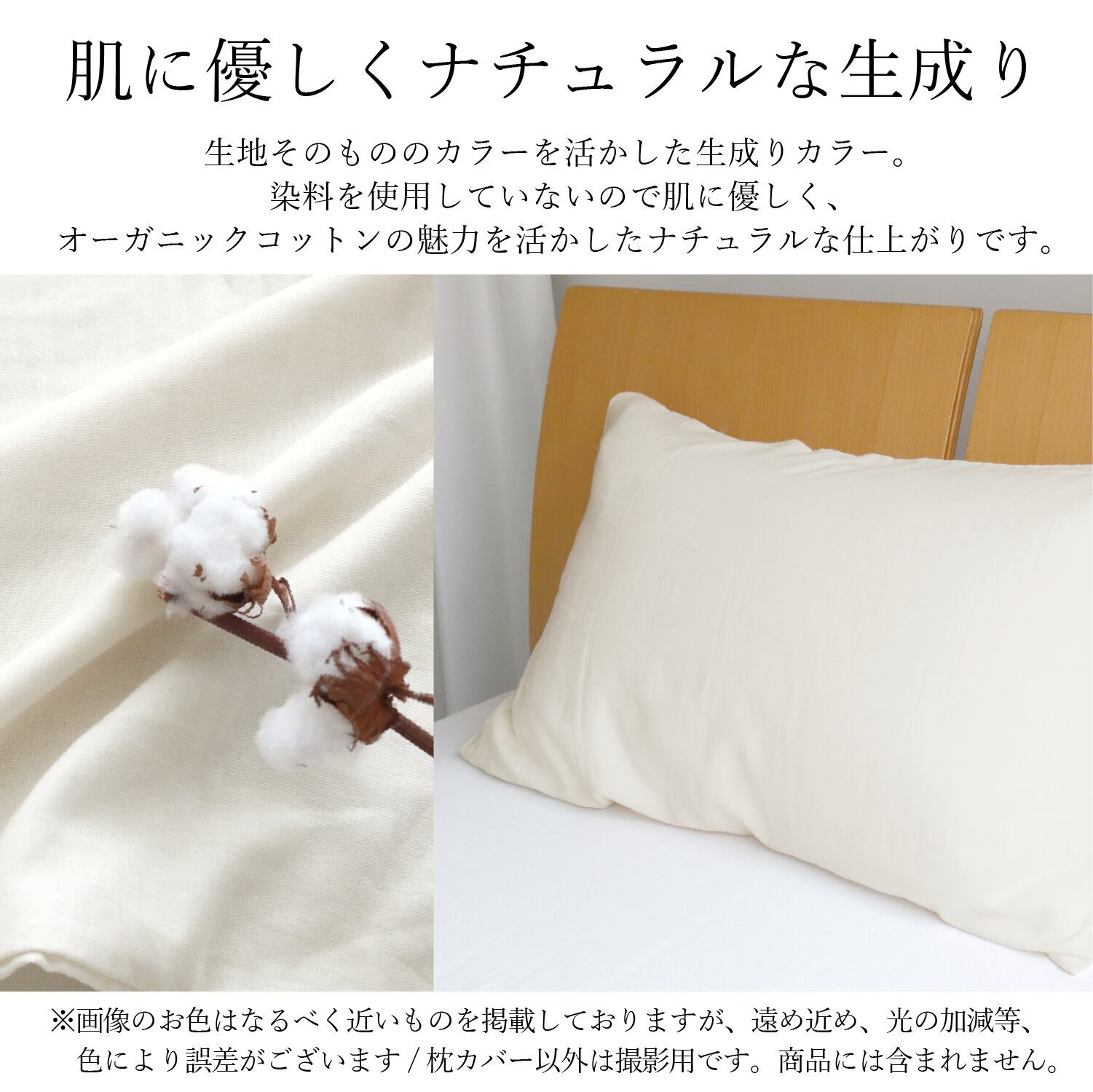 オーガニックガーゼ 枕カバー 綿100% 43×63cm 日本製 オーガニックコットン 生成り 二重ガーゼ