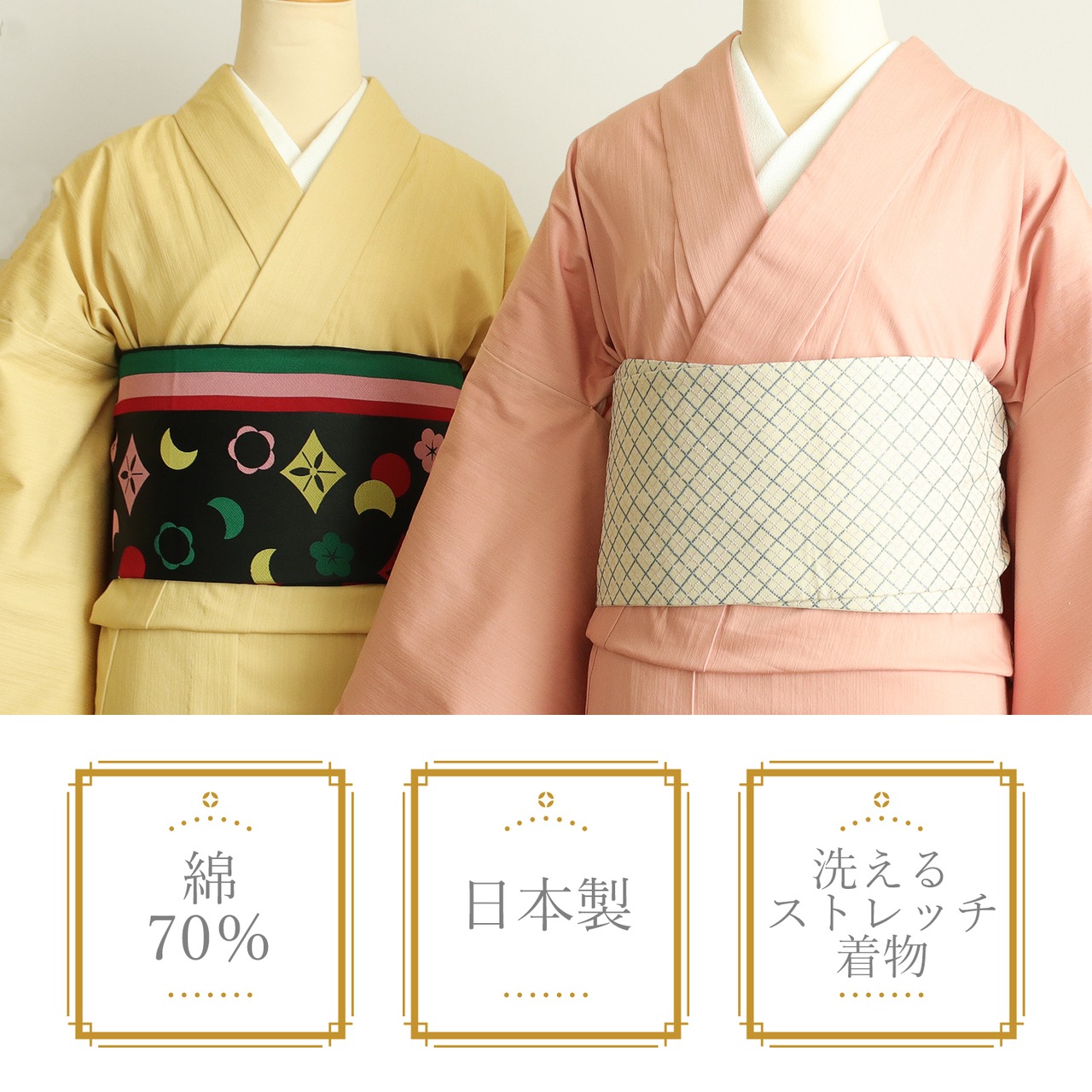 ストレッチ性の『デニム着物』。ストレッチ性のある糸を使う事で、デニム特有の固さやごわつきがなく、動きやすく着心地抜群の生地です。カラーデニムは、機能性だけでなく、見た目にも着やすく上品な装いができるようデザインしました。長年、弊社を代表する大変人気のお着物です。綿織物産地の浜松で、長年繊維業を営んできた弊社が試作を繰り返し完成させた自信のデニム着物。デニムのカジュアルな中にもキリっとした着心地の良いカラーデニムをお楽しみください。