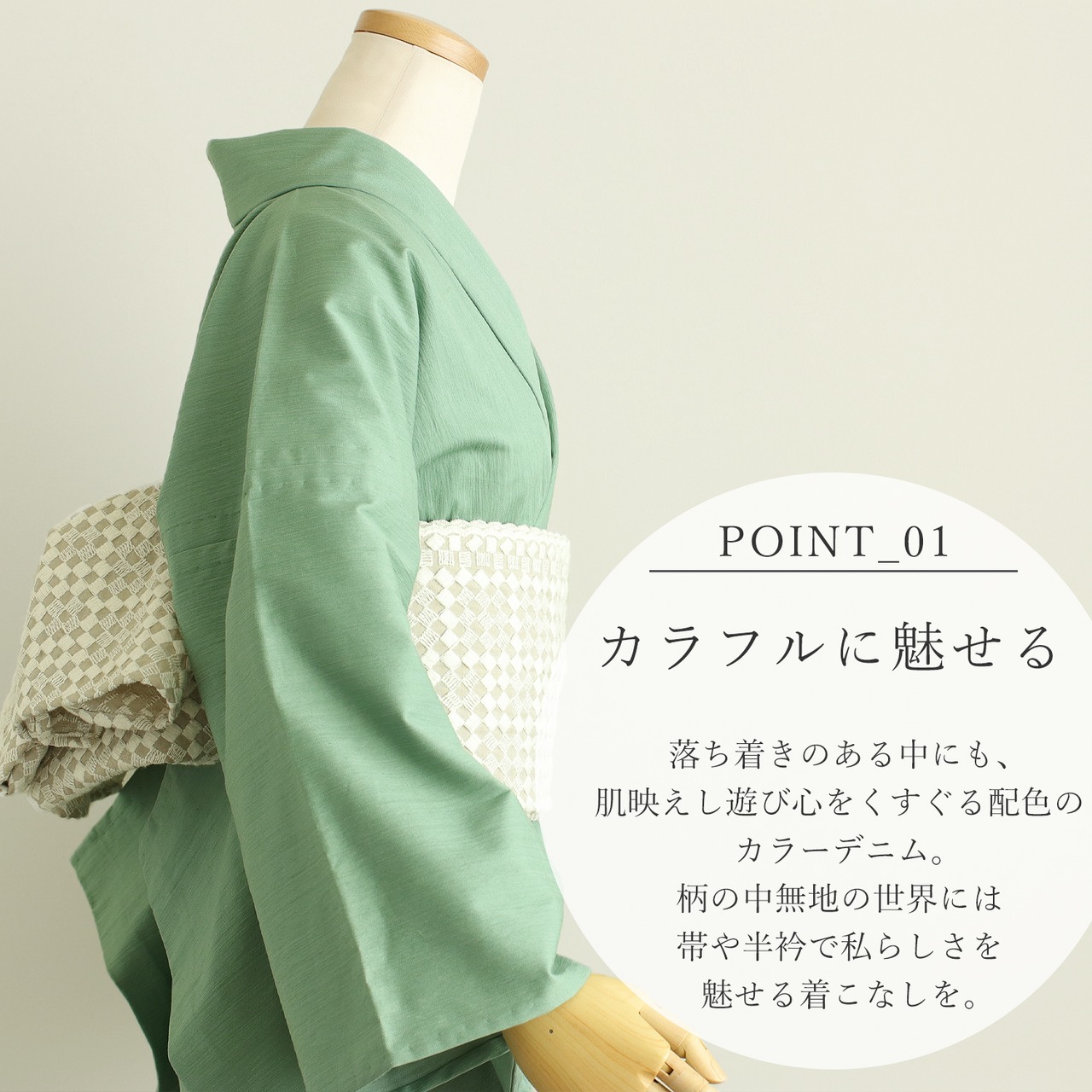 IKS deux デニム着物 レディース ソフトデニム 先染め ストレッチ ミントグリーン(MGR) 日本製