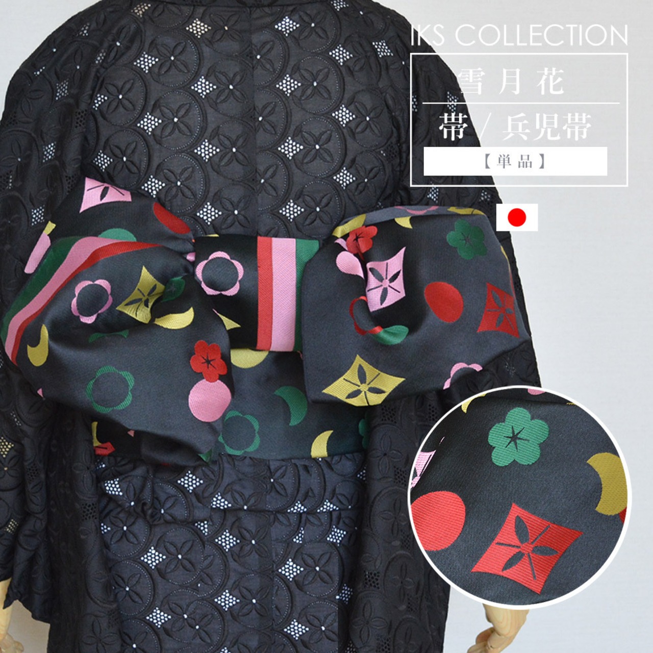 IKS 帯 雪月花 兵児帯 モノグラム 日本製 幅37×4m 単品 ポリエステル100%