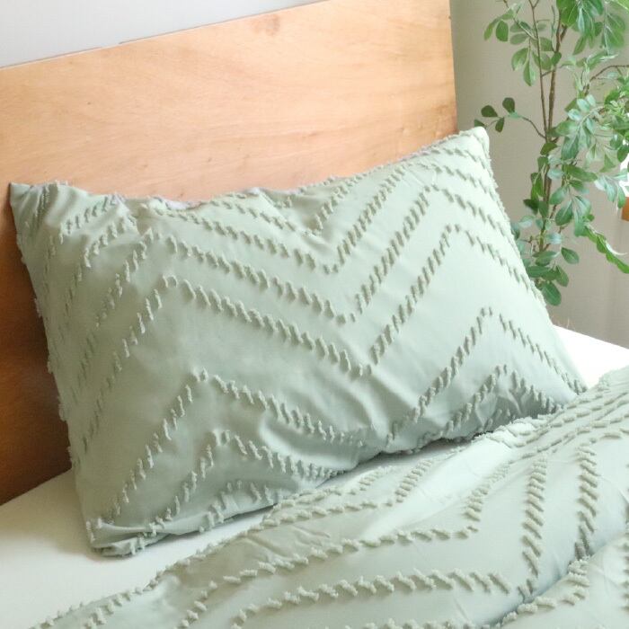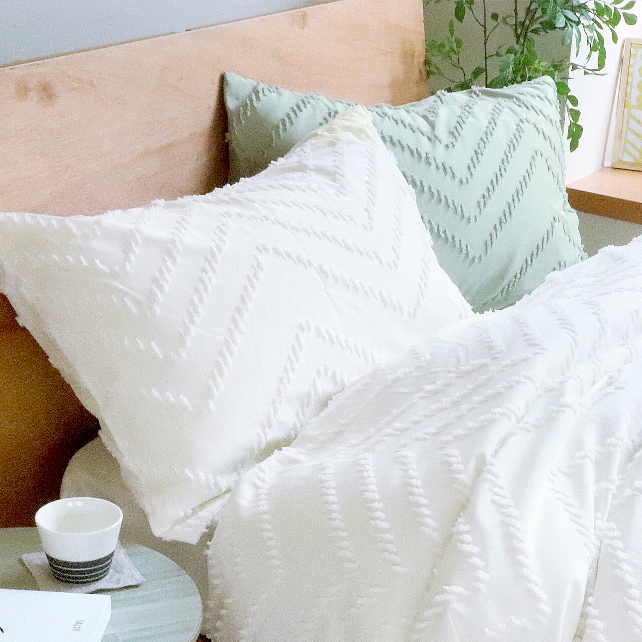 速乾&ノンアイロンで、寝室にセンスが宿る。この枕カバーは、北欧風の幾何柄がとってもおしゃれ!カットジャガードの加工が立体感を演出します。速乾性があるので、洗濯後もすぐに使えて便利。ノンアイロン仕様だから、忙しい日々でも手間いらずです。ホワイト、グリーンの2色展開で、お部屋の雰囲気に合わせて選べます。どんなベッドにもぴったりです!