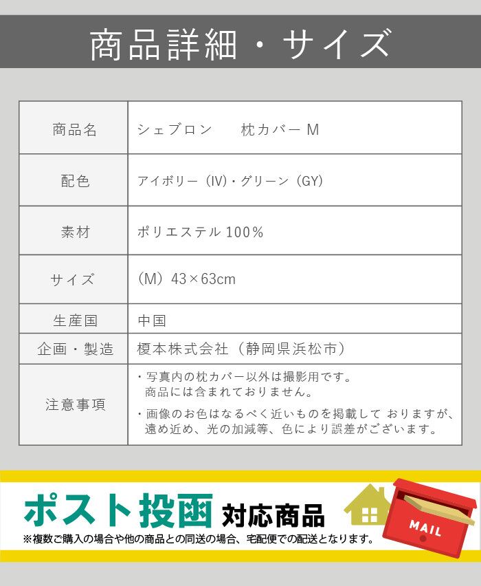 シェブロン 枕カバー M 43×63cm 速乾 ノンアイロン カットジャガード