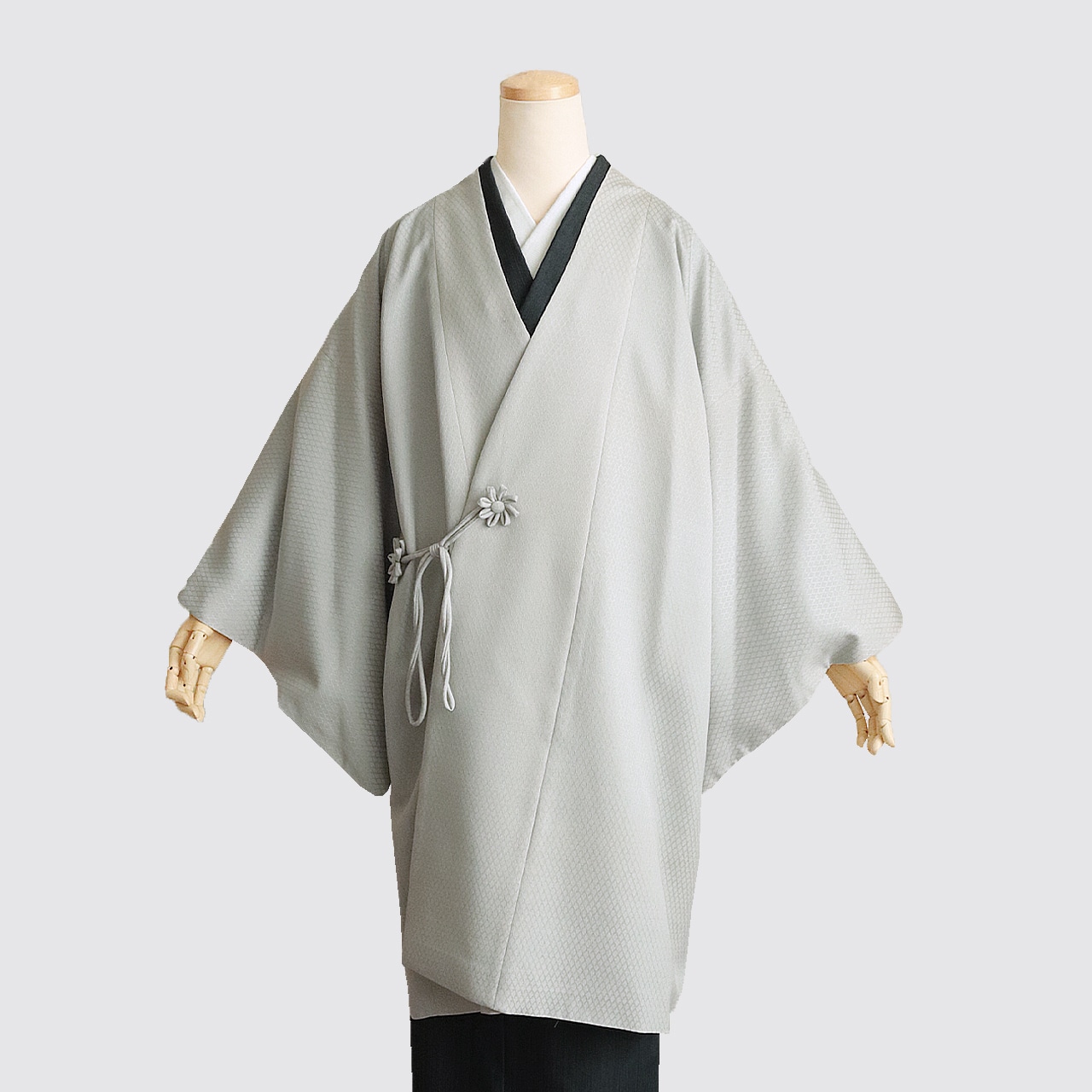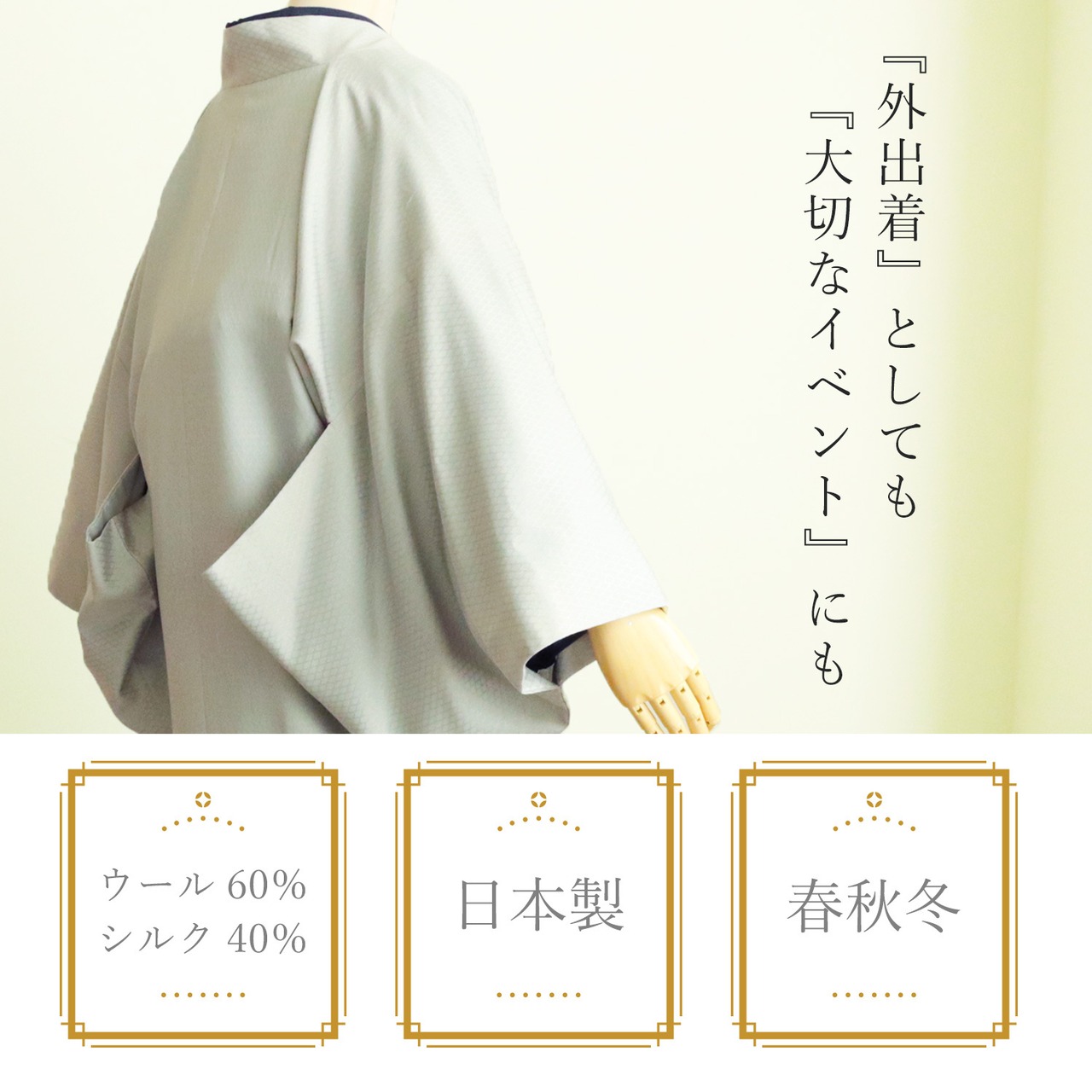 シルクウール 道中着 袷せ グレー ダイヤドビー フリーサイズ 日本製