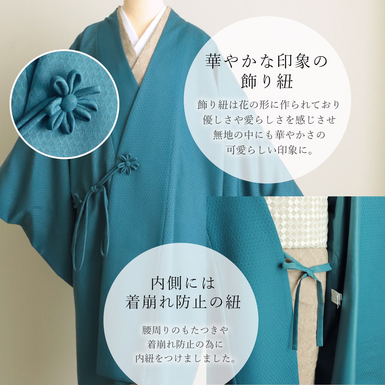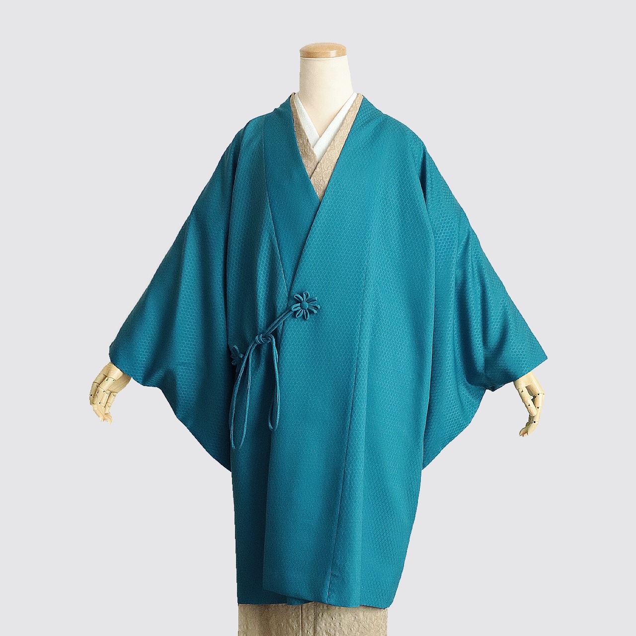 シルクウール 道中着 袷せ ブルーグリーン ダイヤドビー フリーサイズ 日本製