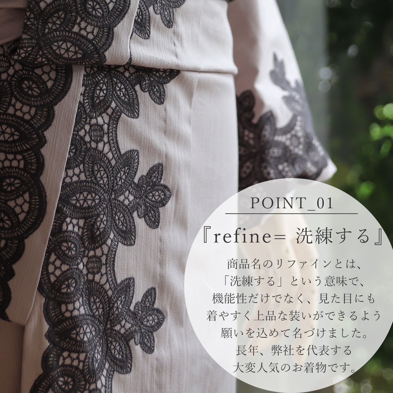 80余年の弊社が自信をもってお届けする美・品・快適を実現したお着物です。