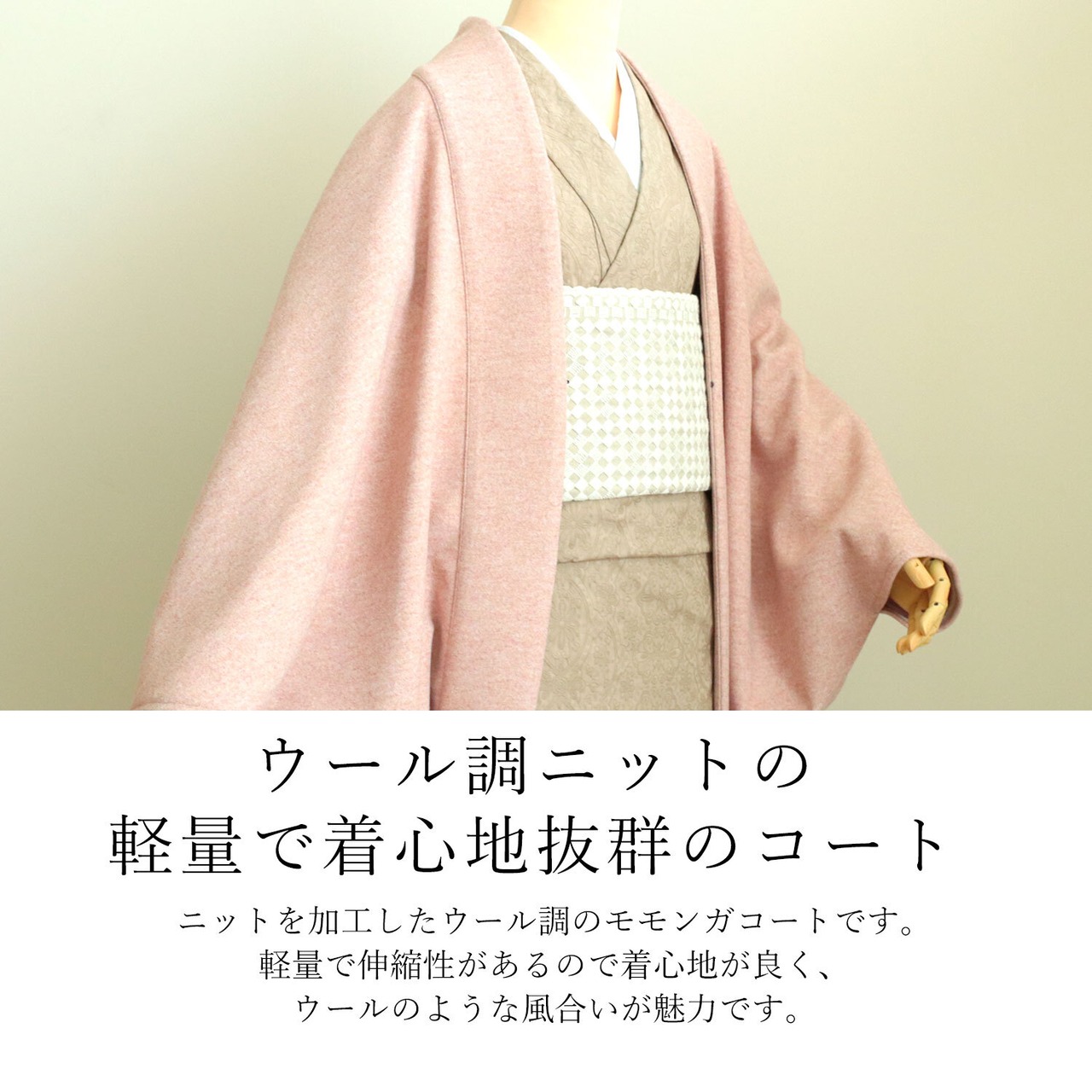 ニットを加工したウール調のモモンガコートです。伸縮性があるので着心地が良く、ウールのような風合いが魅力です。軽量な単衣仕様なのでさっと羽織れて使いやすいモモンガタイプのデザイン。色は優しい色合いののベージュとイエローとピンクとオフホワイトをご用意いたしました。長身の方にもおすすめのオーバーサイズ仕様です。