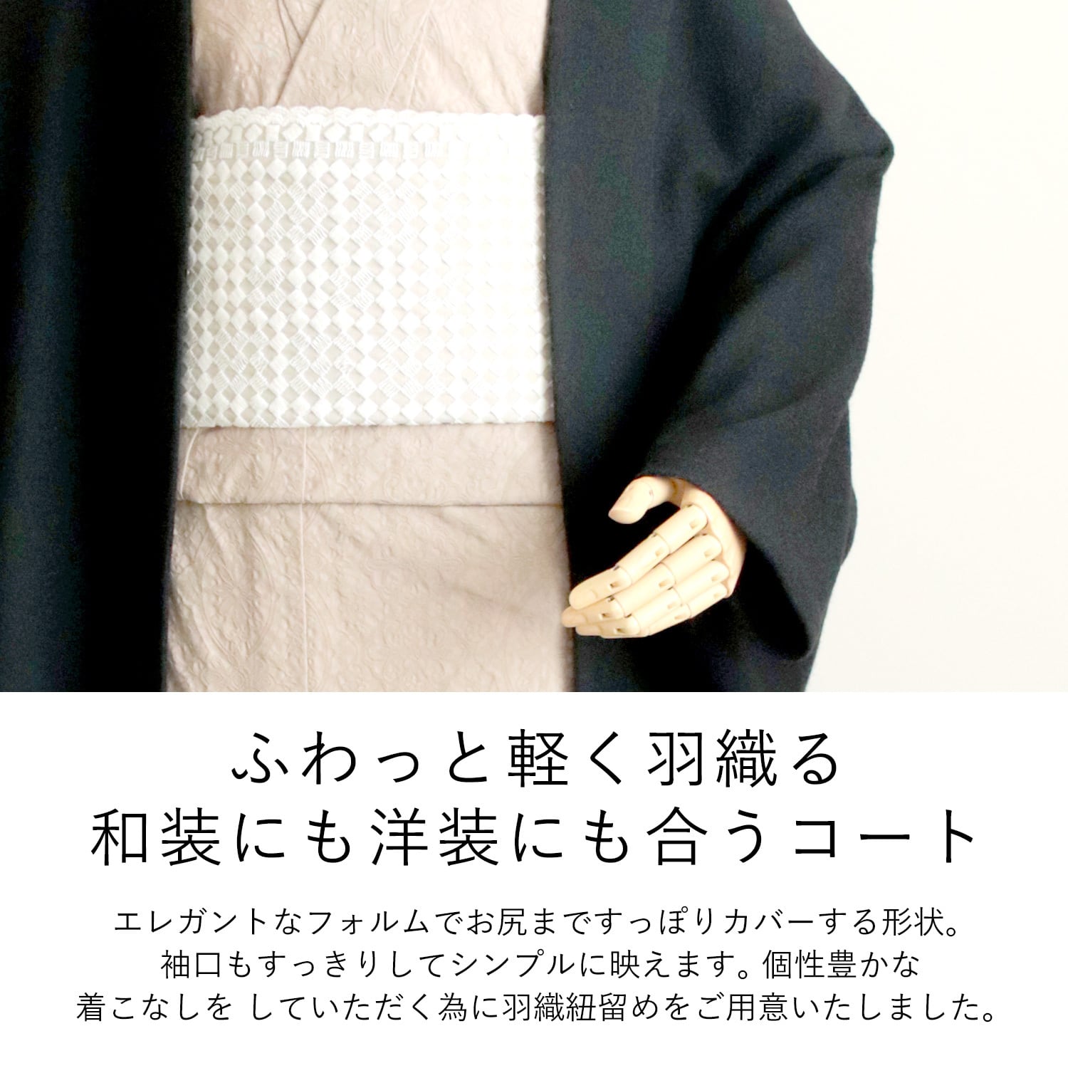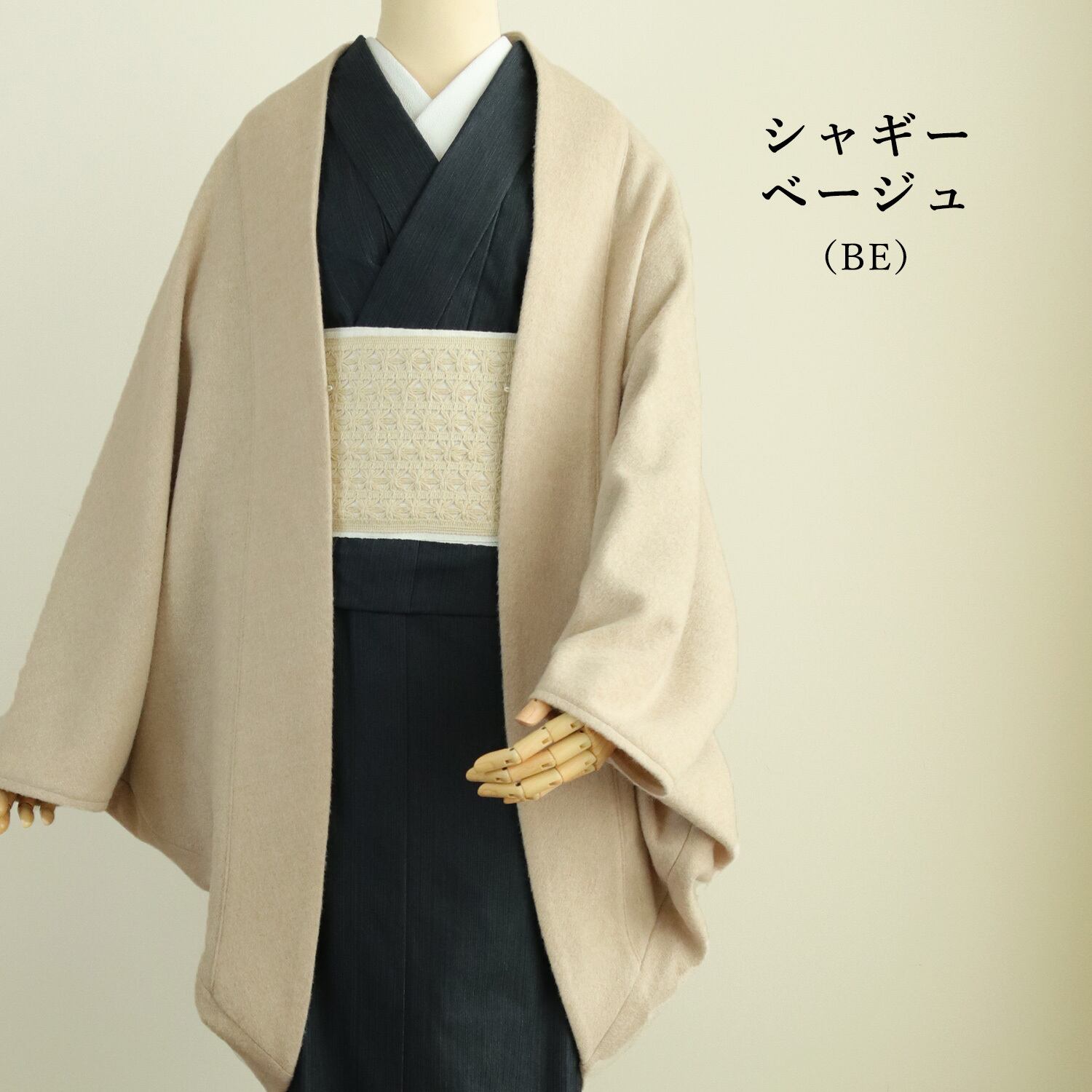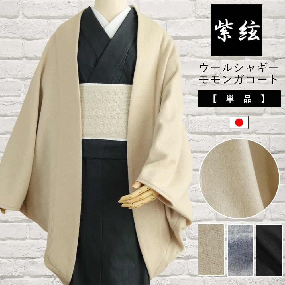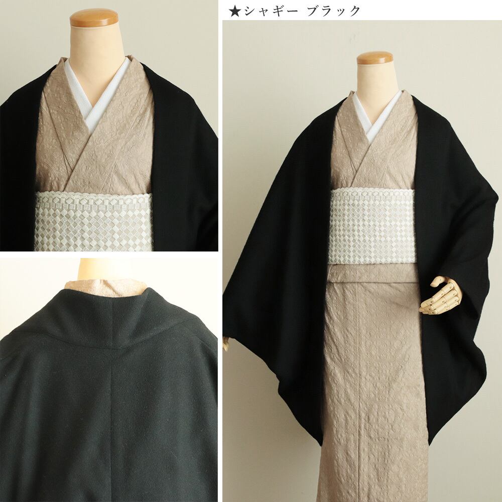 ベーシックカラーのグレーとブラックで合わせやすく軽く羽織る感じが嬉しい。ウール68%にも関わらず、とっても軽くて帯やお尻まですっぽり覆えるシンプルコート。冬のお出掛けに嬉しい羽織紐留め(乳有り)付きです。<br>グレーと品格あるブラックシャギーにはベージュを追加いたしましたのでお楽しみください。