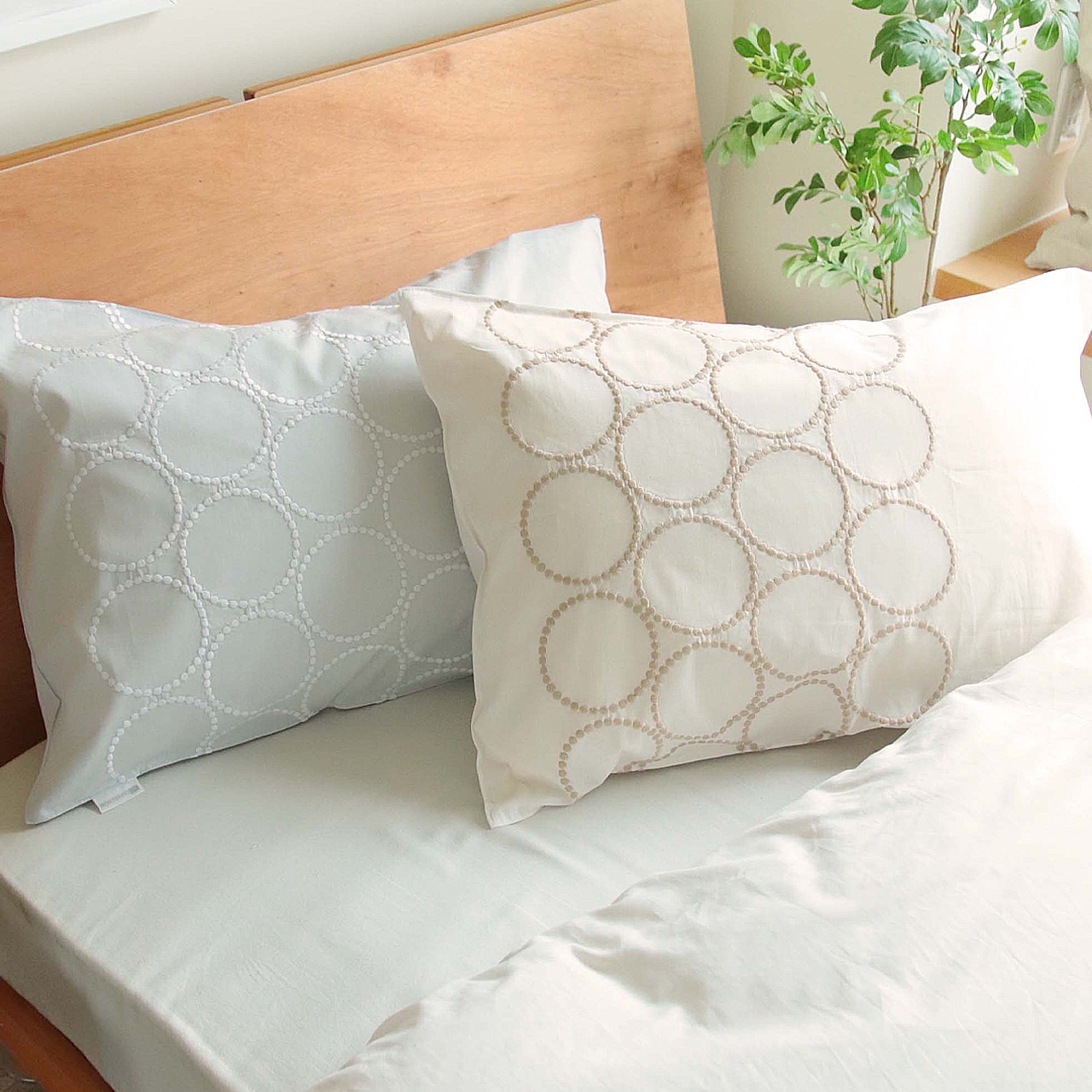 カルポス 枕カバー M 43×63cm 刺繍 綿100% おしゃれ 柄 ドット 北欧