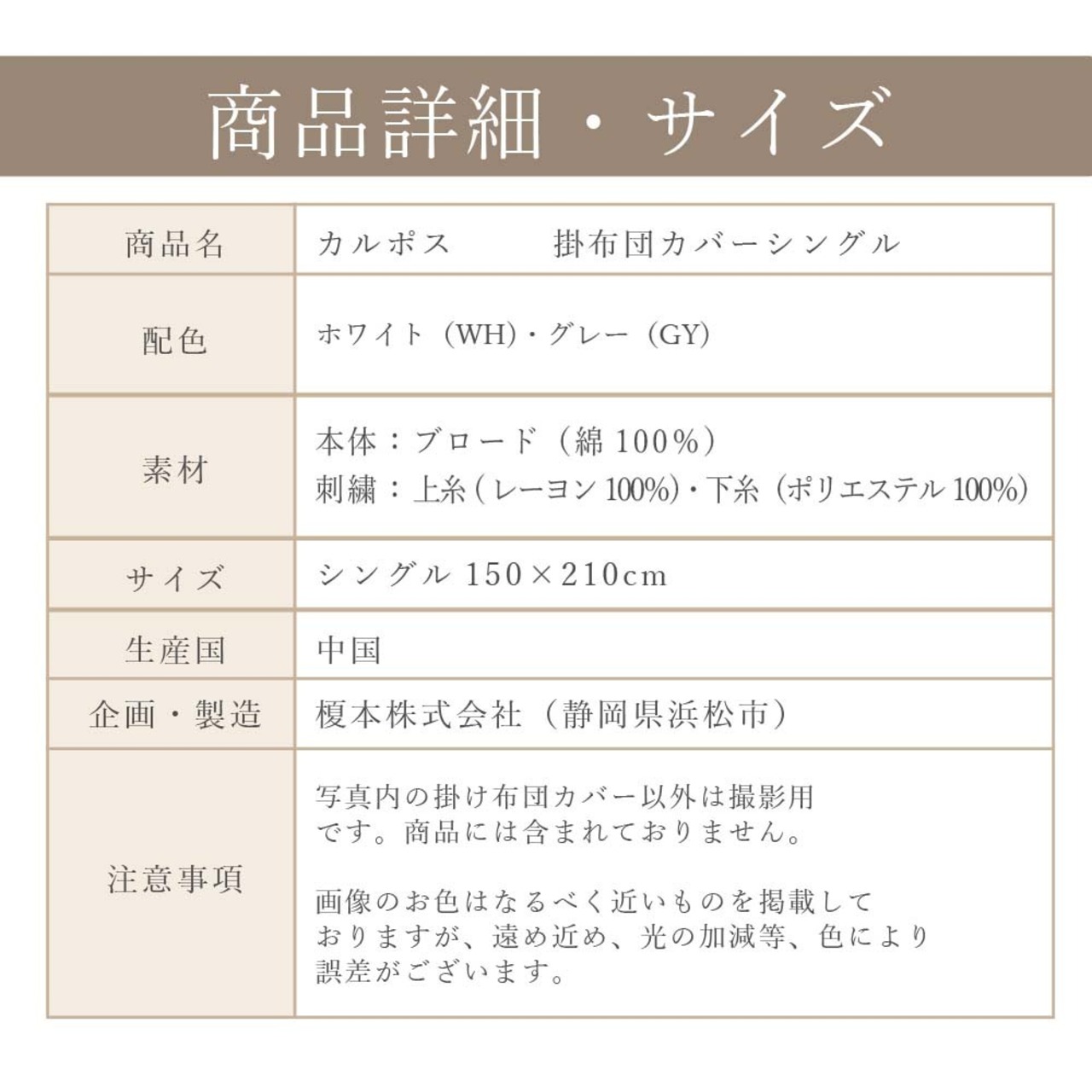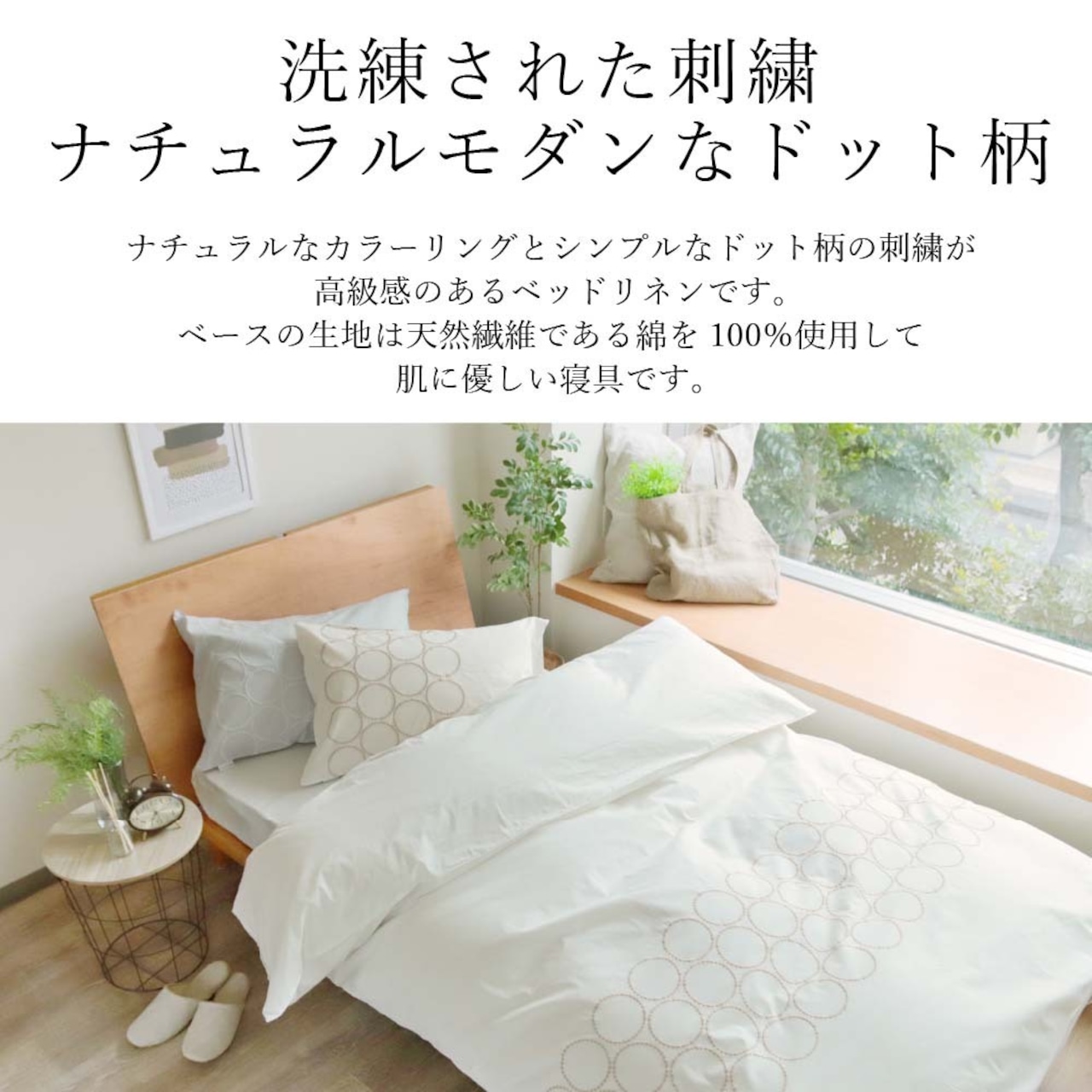 カルポス 掛け布団カバー シングル 150×210cm 刺繍 綿100% ドット 北欧
