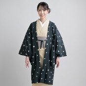「shangri-la 水玉柄 羽織」は、心が踊るような水玉柄が特徴の一枚です。滑らかな見た目と触り心地が特徴のちりめん。表面に凹凸(シボ)がある織物「ちりめん」は、耐久性や扱いやすさがあり、お洗濯も可能でシワになりにくく袷仕様なので3シーズン着用可能です。墨色よりの黒色が落ち着きと上品さをアップしてくれ、デザインがシックな中にも上質感を感じさせる一着です。