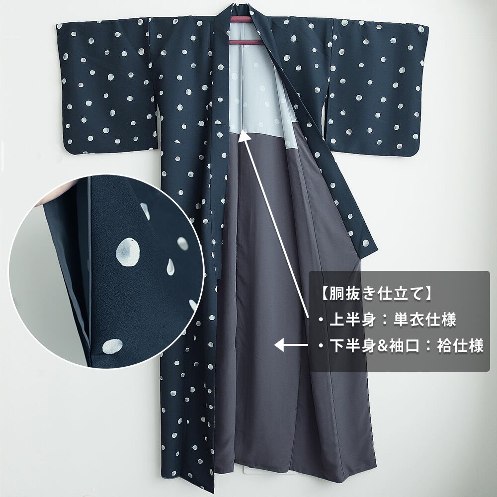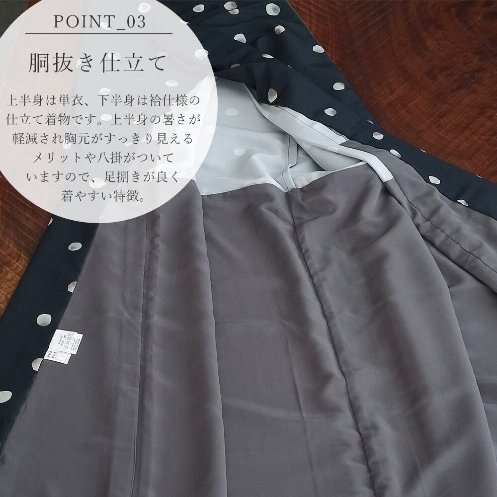 着物 水玉 ドット 胴抜き仕立て ちりめん ポリエステル フリーサイズ レディース