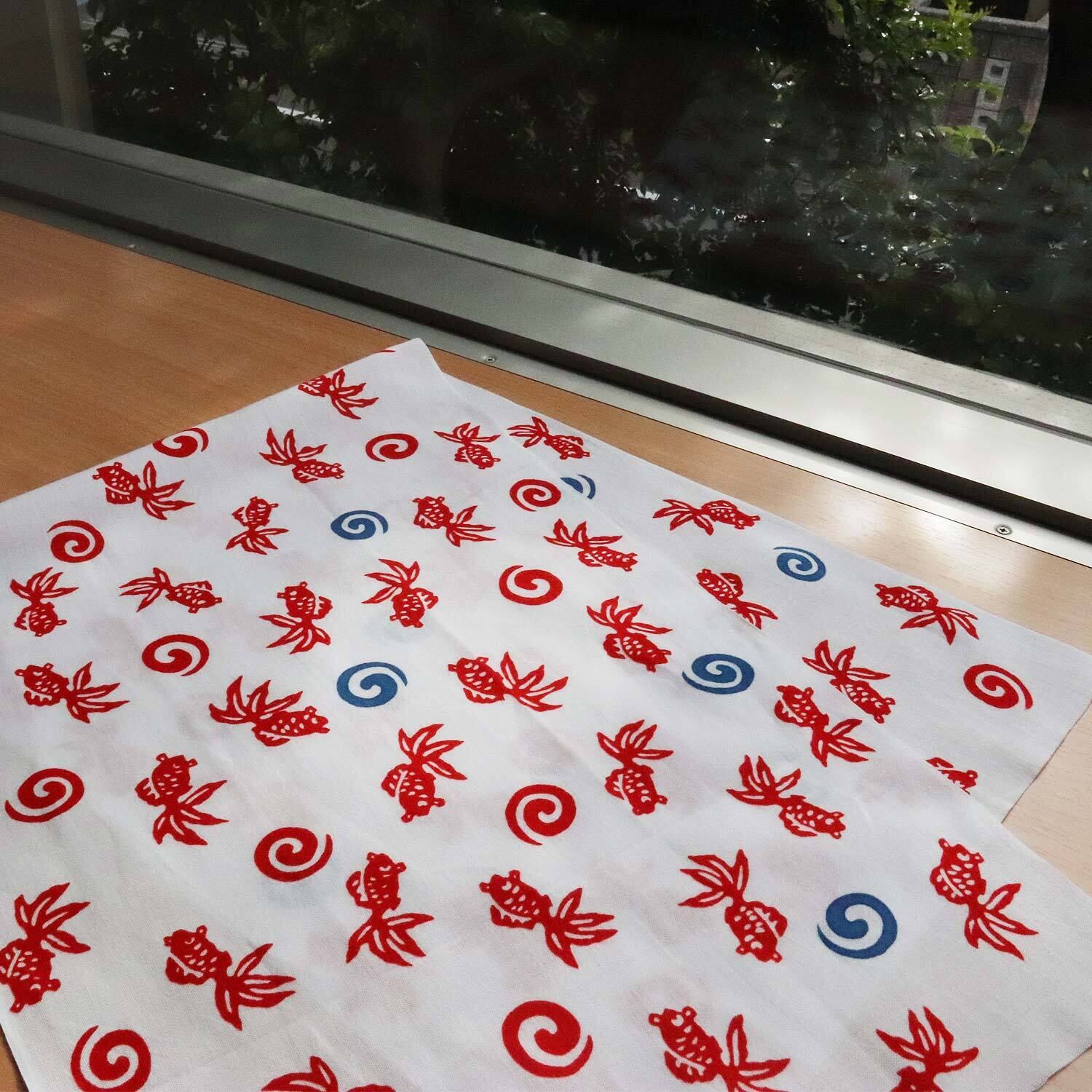 【商品名】 てぬぐい 金魚 白