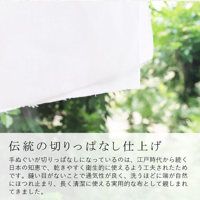 染める前の“素”の魅力を味わえる白無地タイプが登場しました。愛知県・知多地域で織られた伝統的な知多木綿の総理生地を使用しており、ガーゼのように柔らかく肌に優しい風合いと高い速乾性が特長です。サイズは34×90cmと日常使いにちょうどいい手ぬぐいサイズ。洗顔やキッチン、料理の布巾としてはもちろん、お弁当包みやアウトドア、赤ちゃんのお世話など幅広いシーンで活躍します。綿100%のコットン素材は使うほどに馴染み、なめらかでやさしい手触りが暮らしに自然と溶け込みます。シンプルな白無地だからこそ、使い方は自由自在で、家族での使い分けや染色・刺繍などのアレンジにもぴったり。そんなこだわりの生地を存分に体感していただくために、白無地の手ぬぐいを5枚セットにしました。IKS COLLECTIONのてぬぐいで、毎日の生活にちょっとした心地よさと“素の美しさ”を取り入れてみませんか?