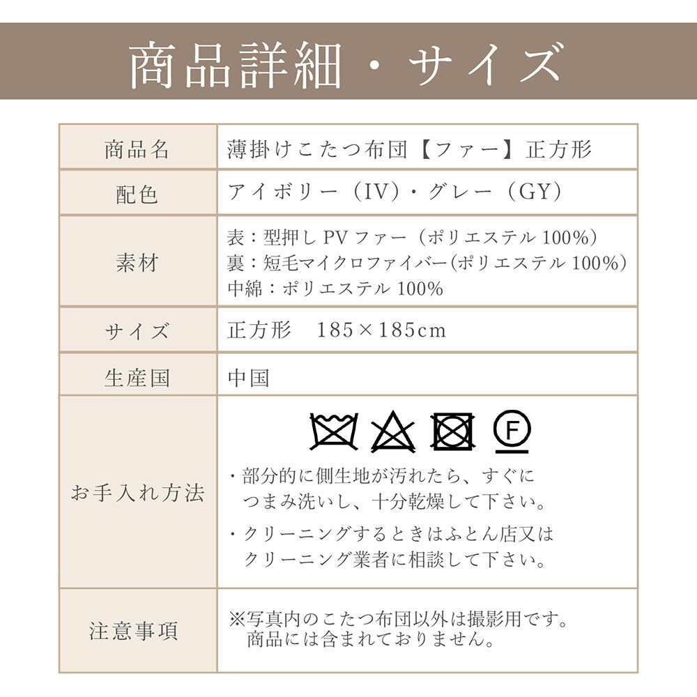 薄掛けこたつ布団 単品 正方形 185×185cm ファー マイクロファイバー