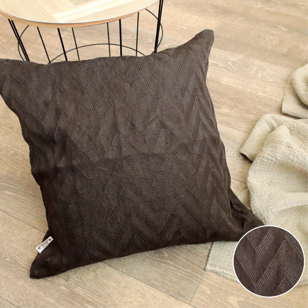 リネン生地の中でも最上級のクオリティといわれるフレンチリネンを100%使用した座布団カバーです。美し水と気候に恵まれたフランス北部で栽培された亜麻が原料になっています。リネンのジャガード織はとても希少で、更にこれだけ大きなヘリンボーン柄は中々お目に掛かれません。その生地を、遠州独自の技術を持つ職人さんが手作業で染色し、遠州地方独特の強風「遠州の空っ風」とたっぷりの日光にあてる天日干しをして仕上げました。少ない量を丁寧に時間をかけて染め上げた独特な色味と奥深い風合い生地を使った贅沢な座布団カバーです。汚れたらご家庭で手洗いできるのもポイント。ナチュラルなベージュとブラウンの2配色。こだわりの日本製です。