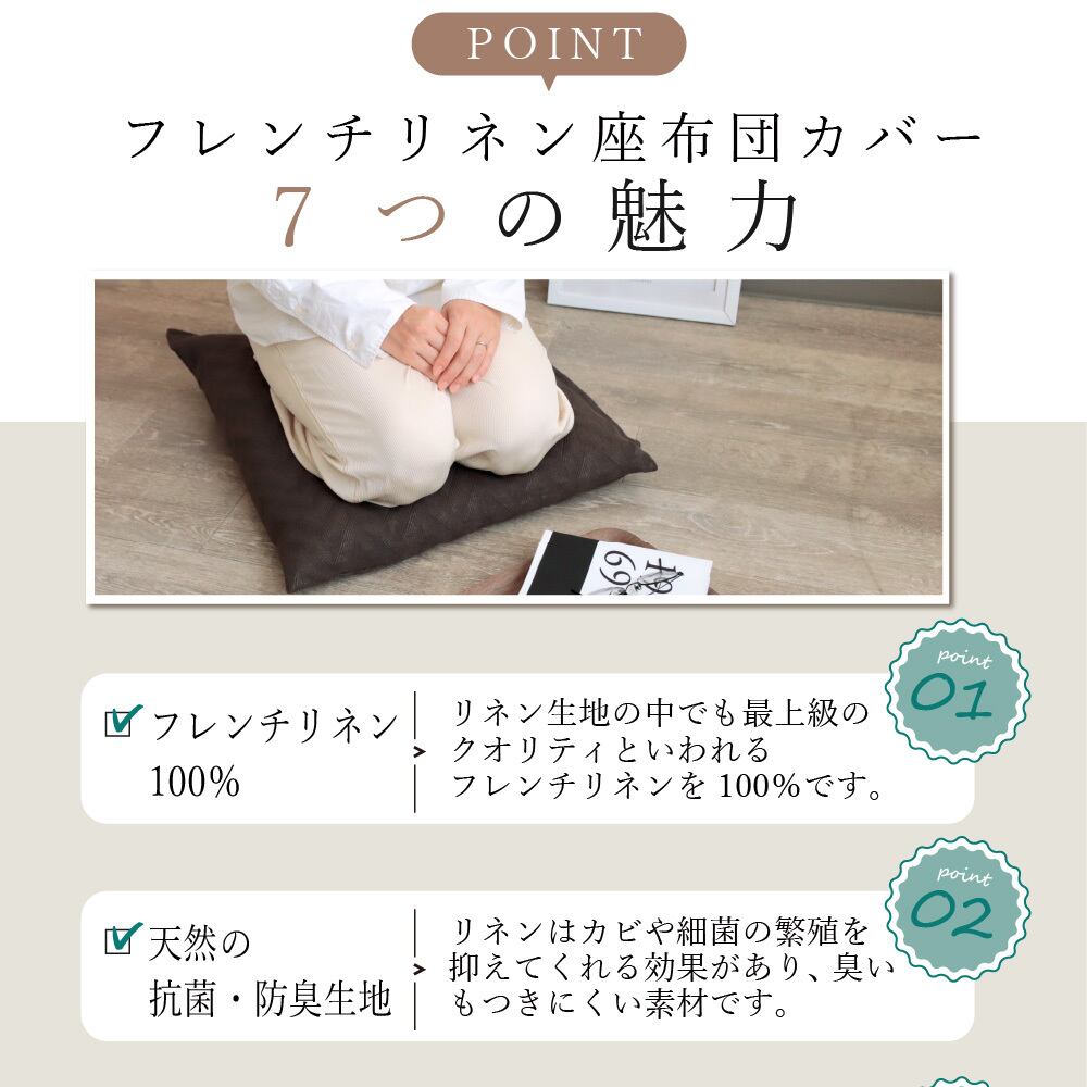 フレンチリネン100%の生地を使った上質な座布団カバー
