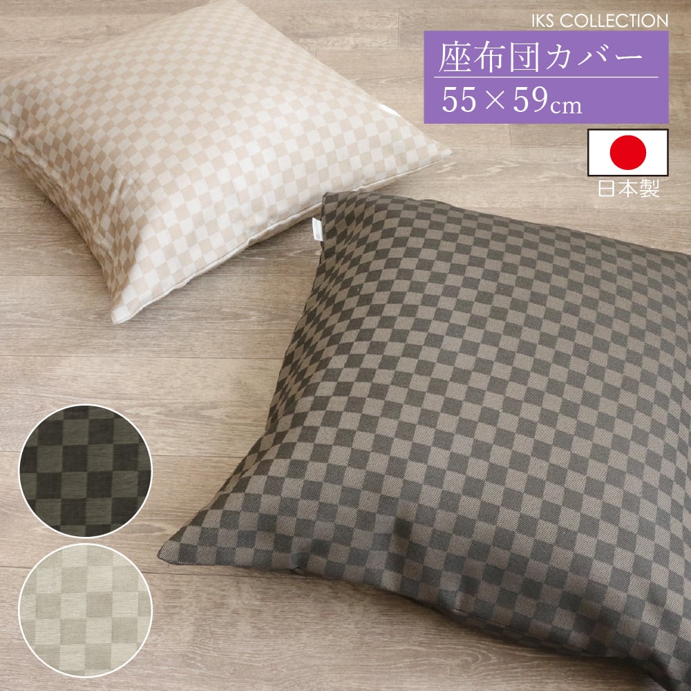 市松模様がシンプルでシックな「マス」。当店の座布団カバーの中でも、長年にわたって多くの人に愛されているヒットアイテムです。シンプルなデザインは主張しすぎず、上品にお部屋の品格をアップしてくれます。和風のお部屋にも、モダンな洋風のお部屋にも合う、マルチな座布団カバーです。男女問わず使用でき、贈り物にもよろこばれます。