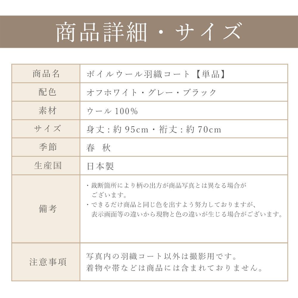 ボイルウール羽織コート オフホワイト 日本製