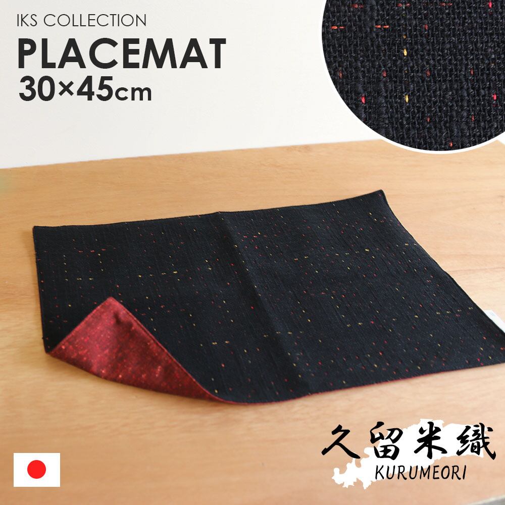 久留米織り ランチョンマット 30x45cm 綿100 日本製 ブラック 【姫椿】