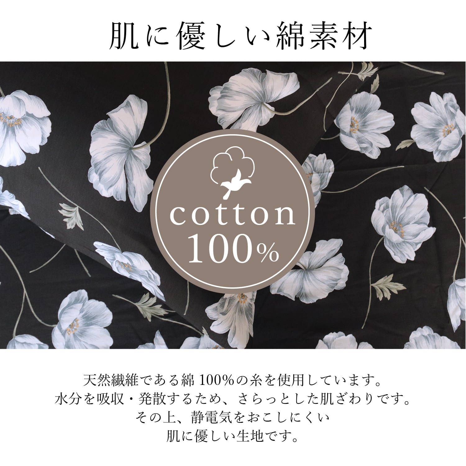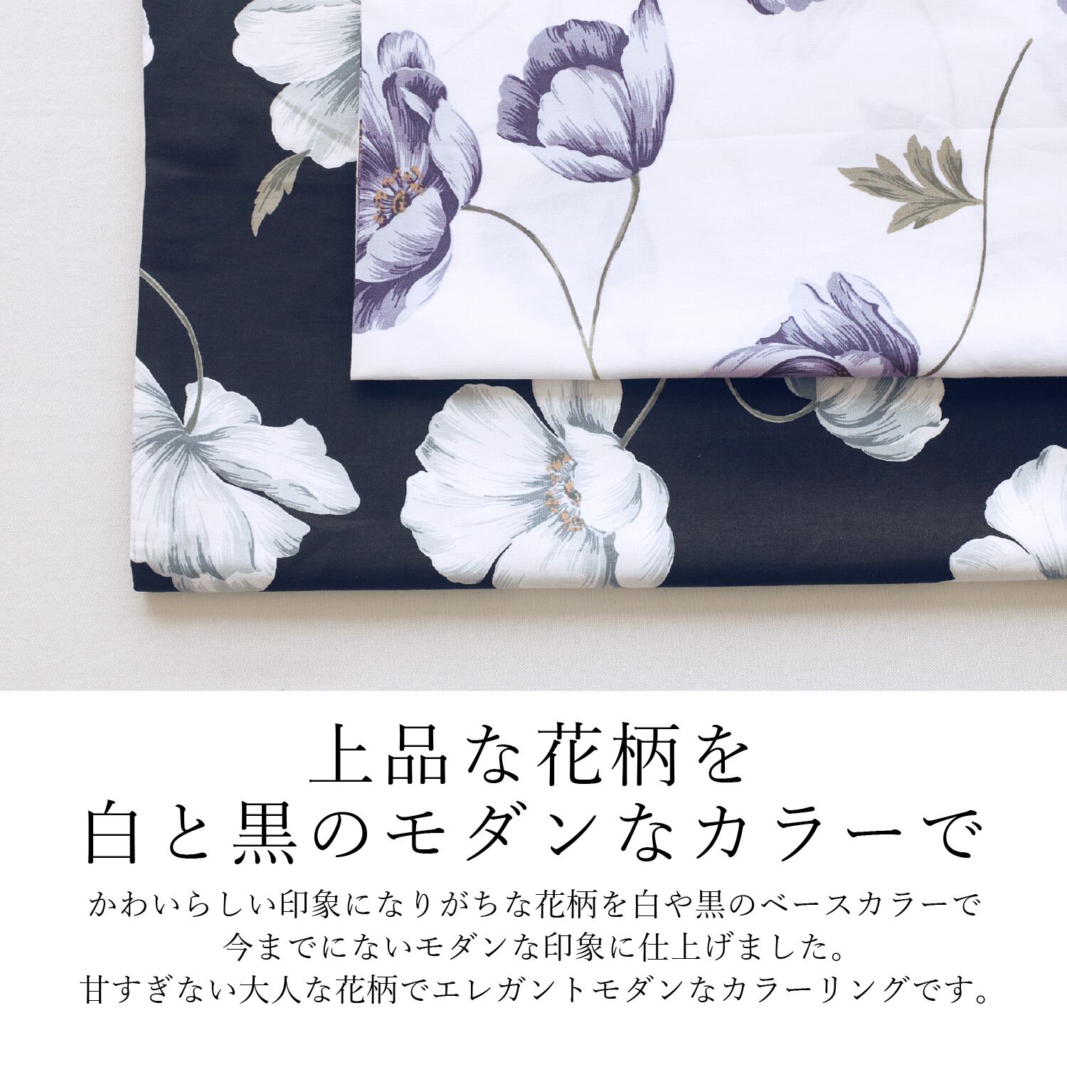 綿100%のブロード生地に軽やかに踊る繊細な花。