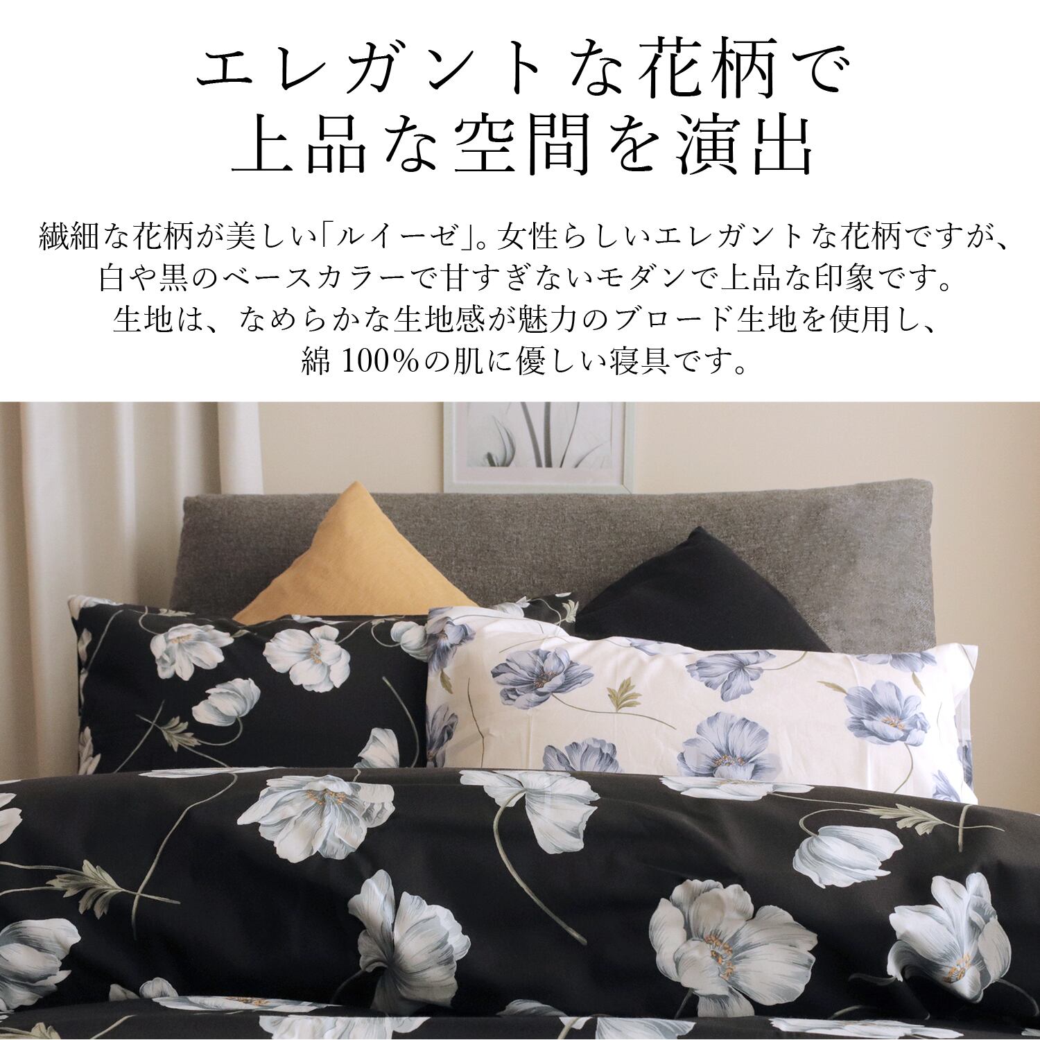 ルイーゼ 枕カバー M 43×63cm 綿100% 花柄 日本製