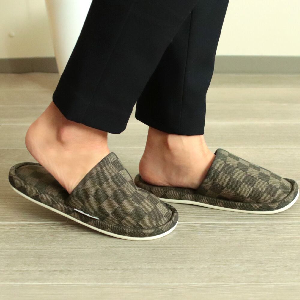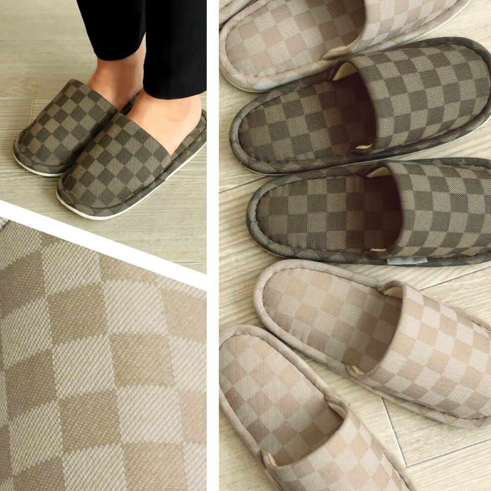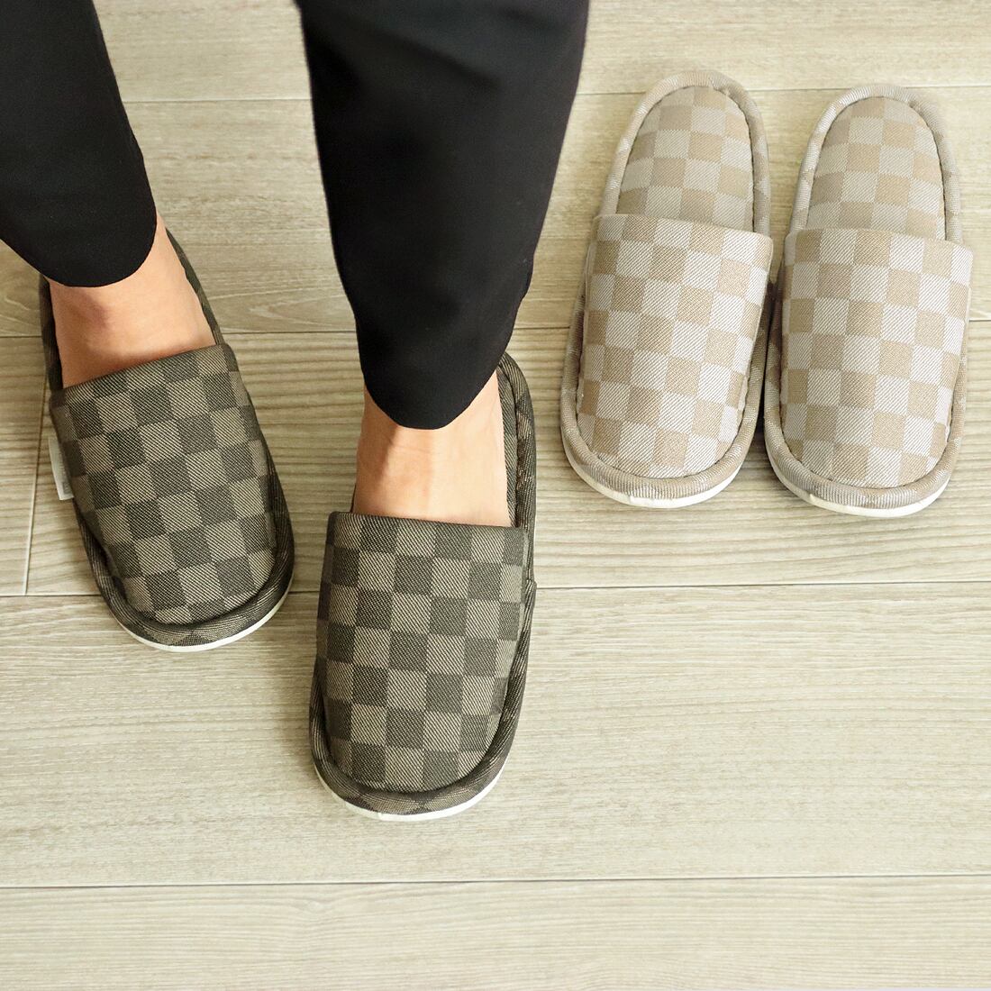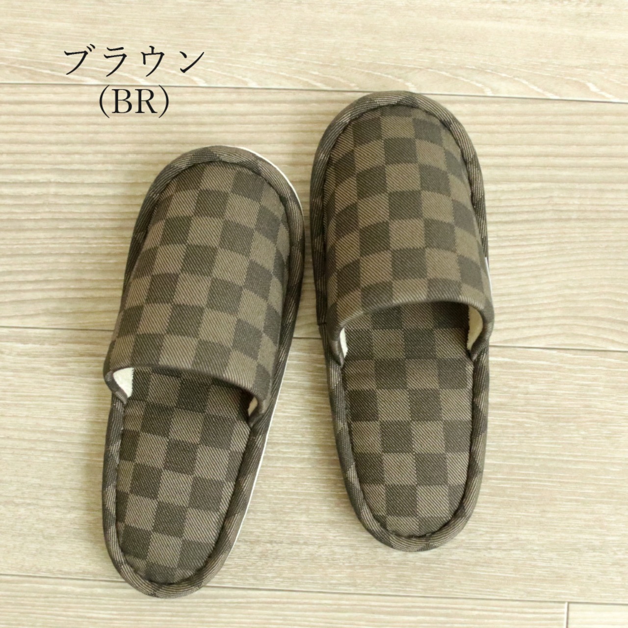 スリッパ L サイズ 【マス】 市松 チェック ジャガード織り 日本製