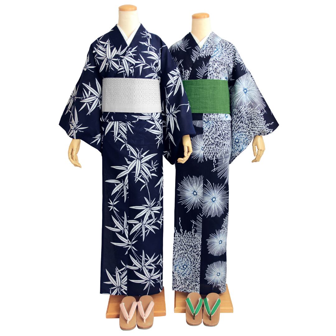 IKS 浴衣 注染 蒼 No82 綿100 五本絽 プレタ お仕立て済 日本製