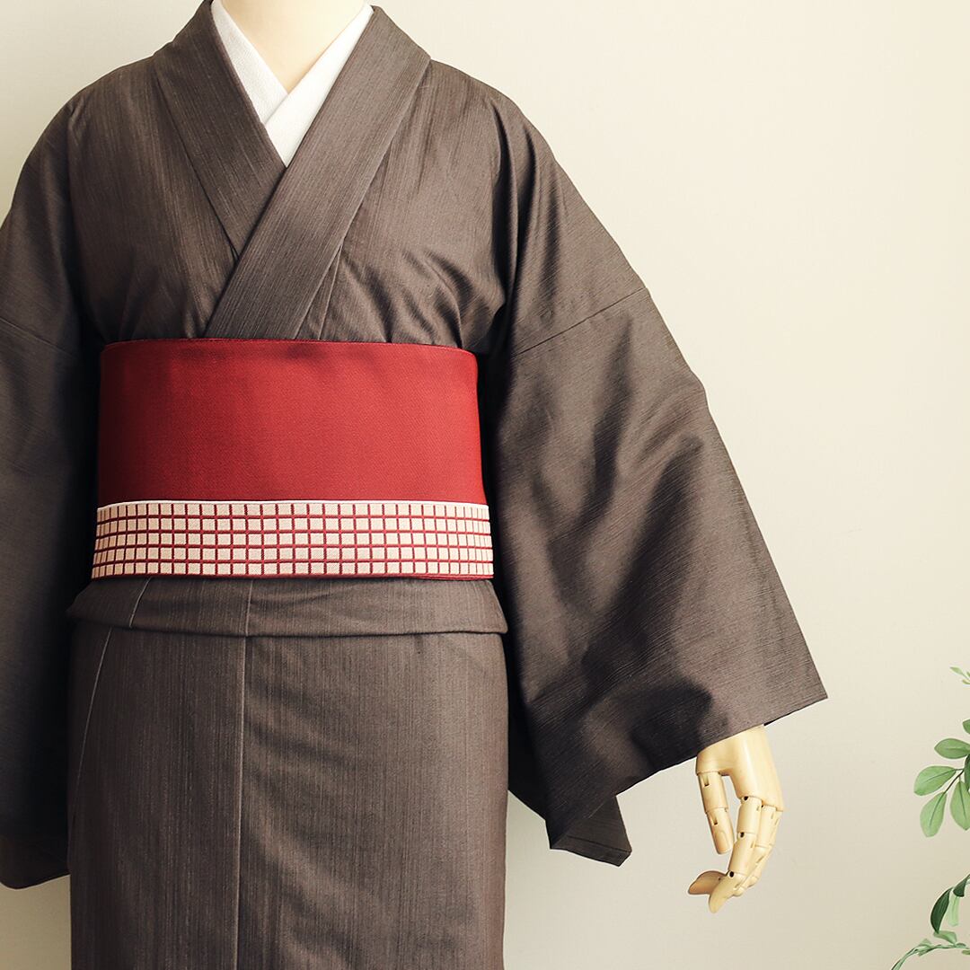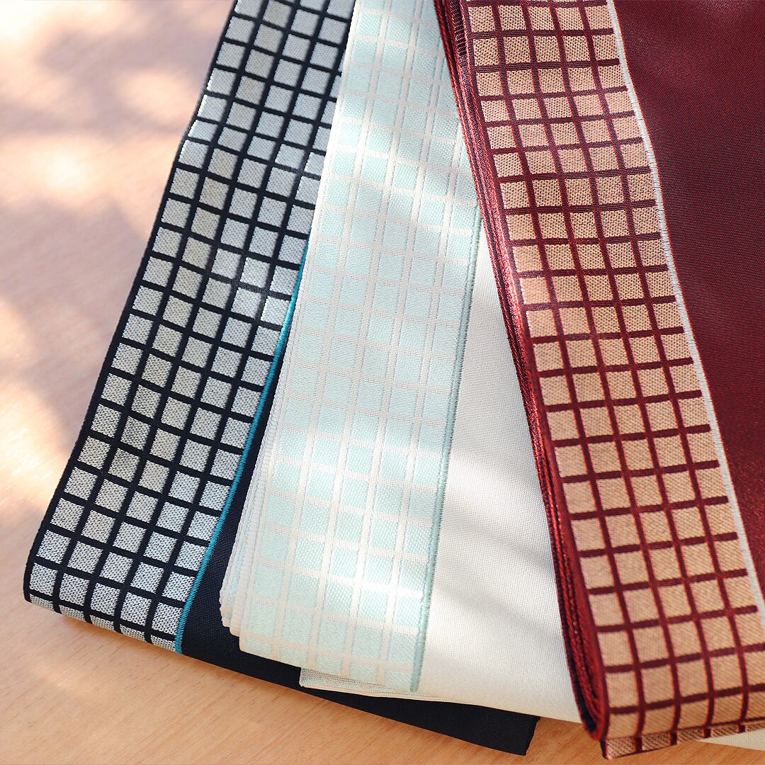 季節を問わず楽しめる帯は、コーディネートの幅も広がります。ポリエステル100%のスクエア配色の「ブロック小袋帯」です。シンプルだけど幾何学模様のあしらいがスタイリッシュな生地です。カラーバリエーションはどんな浴衣や着物にも合う定番の3カラーを揃えました。お洋服感覚でどんな浴衣や着物にも合いちょっとしたアクセントを加えてくれます。コーディネートの幅も広がり、使い回しがきく便利なアイテムです。